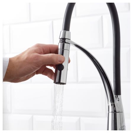 Бесплатно 10 лет гарантии. Подробнее об условиях гарантии – в гарантийной брошюре. Двойная функция – используйте кнопки для переключения между концентрированным потоком воды и ручным душем. Съемный ручной душ делает мытье посуды проще и удобнее.
