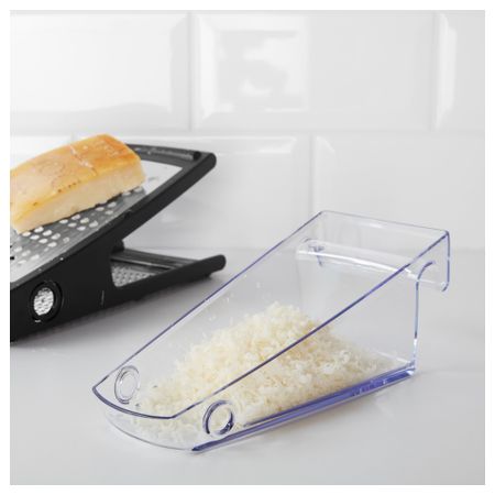Легко и быстро измельчает продукты. Крупная и мелкая терки. Контейнер можно использовать для хранения измельченных продуктов. Вымойте изделие перед первым использованием. Длина: 24 см. Ножки: Силиконовый каучук. Ящики: САН (Сополимер акрилонитрила)