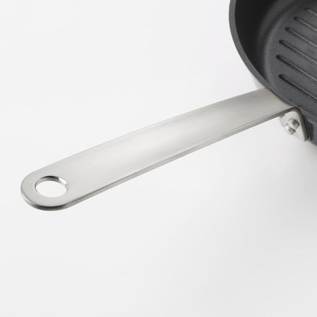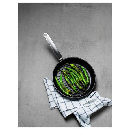 Подходит для всех типов варочных панелей, включая индукционную.Благодаря ребристой поверхности дна на готовом блюде появляются аппетитные полоски.Сделано из алюминия.