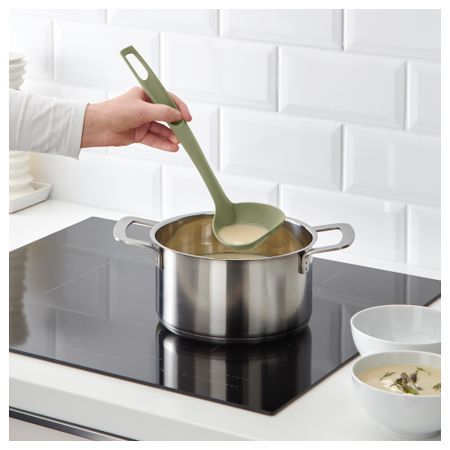 Не повреждает антипригарное покрытие кастрюль и сковородок. В набор входит: лопатка (32 см), ложка (33 см), половник (29 см), ложка для спагетти (31 см) и кулинарные щипцы (28 см). Армированная полиамидная пластмасса
