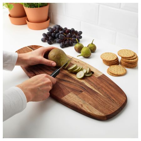 Прочная деревянная поверхность. Ножи не затупляются. Разделочную доску также можно использовать как поднос для подачи на стол сыров или мясной нарезки. Длина: 52 см. Ширина: 22 см. Толщина: 1.8 см. Массив акации, Масло Размер: 52x22 см