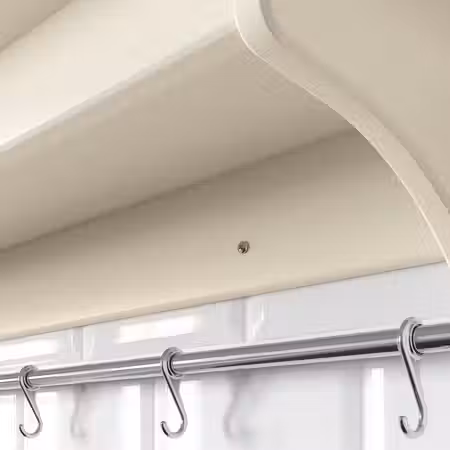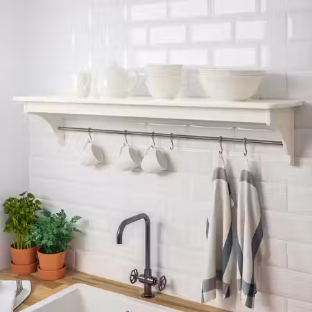 На навесной полке предметы повседневного использования всегда будут на виду и под рукой. Бесплатно 10 лет гарантии. Подробнее об условиях гарантии — в гарантийной брошюре. 3 крючка прилагаются; можно повесить кухонные принадлежности и полотенца.