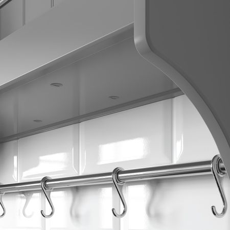 На навесной полке предметы повседневного использования всегда будут на виду и под рукой.Бесплатно 10 лет гарантии. Подробнее об условиях гарантии — в гарантийной брошюре.5 крючков прилагаются; удобно вешать кухонные принадлежности, кружки и прихватки