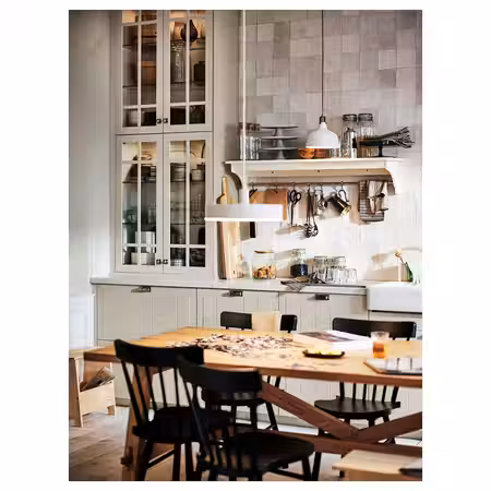Решения для хранения серии ВАДХОЛЬМА добавляют в интерьер неожиданную деталь, которая придает кухне уют и индивидуальность.