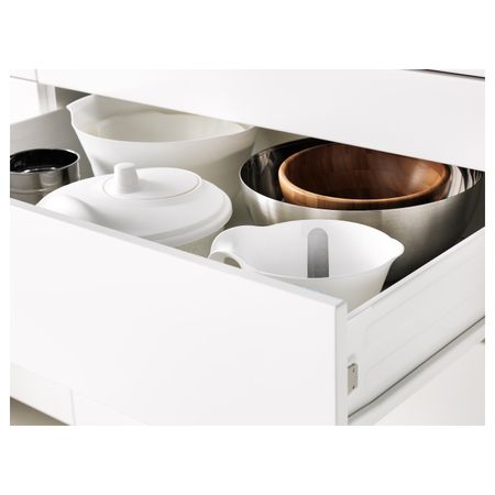 Код кухонного шкафа ME/FÖ 147Ящик ФОРВАРА выдвигается на ¾ своей глубины и обеспечивает достаточно места для хранения.Каркас имеет устойчивую конструкцию благодаря стенкам из ДСП толщиной 18 мм.
