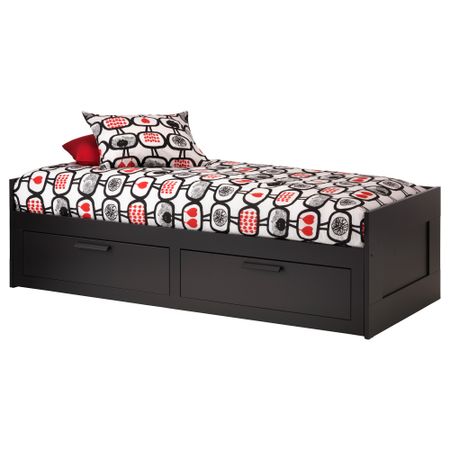 БРИМНЭС 891.300.22 Кушетка с 2 матрасами/2 ящиками, черный, Мосхульт жесткий (80x200 см)