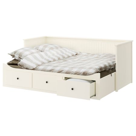 Четыре функции в одном предмете мебели: диван, односпальная кровать, двуспальная кровать и два вместительных ящика для хранения. Постельное белье продается отдельно. Чтобы использовать кушетку как диван, положите матрасы один на другой. Размер: 80x200 см