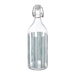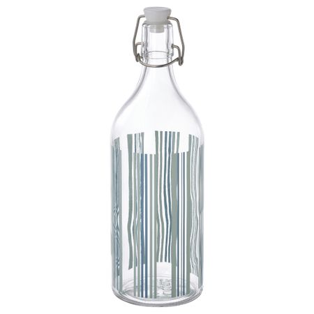 Бутылка с пробкой, 0.5 л, прозрачное стекло с рисунком, ярко-синий ярко-оранжевый IKEA KORKEN КОРКЕН