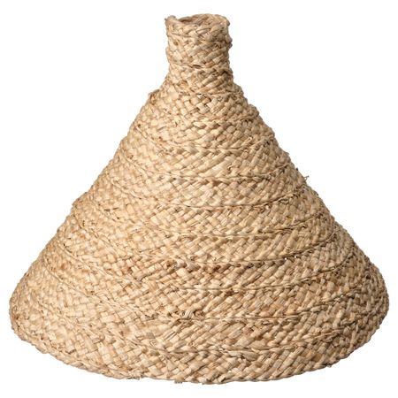 Выразительны абажур изготовлен вручную из банановых волокон сплетенных и сшитых вместе. С включенным светом создает теплую и уютную атмосферу в комнате.