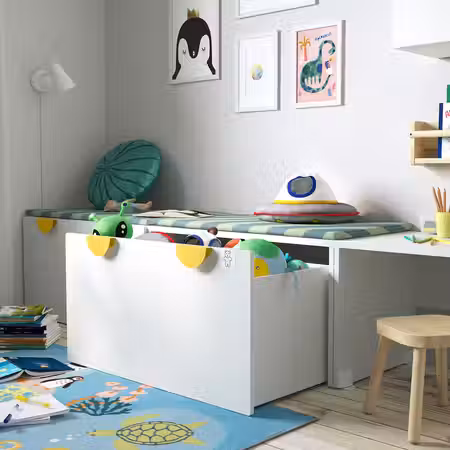 Отлично подходит для хранения игрушек: когда захочется поиграть, достаточно просто выдвинуть ящик.