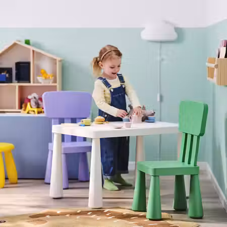 Детский стол УТТЕР по высоте и размерам как раз подходит для рукоделия, настольных игр и даже небольшого праздника с друзьями — как дома, так и на улице.