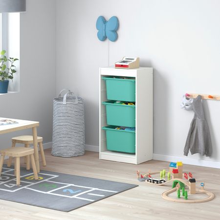 TROFAST ТРУФАСТ 993.304.69 Комбинация для/хранения+контейнеры, белый/белый бирюзовый 46x30x94 см