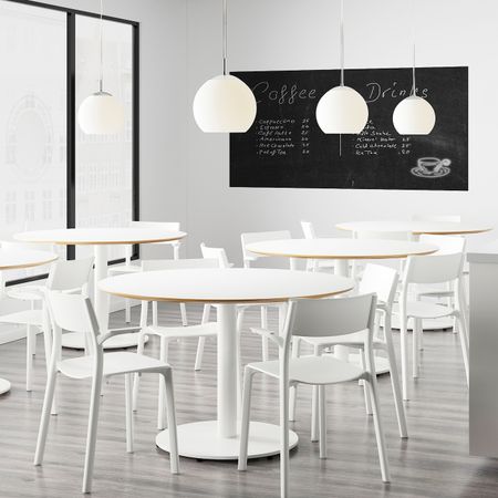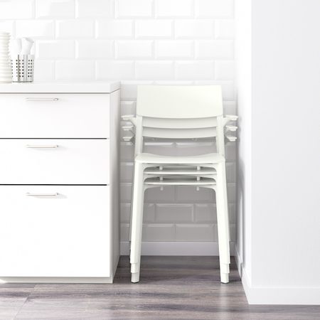 Стулья можно штабелировать, что позволяет экономить место при хранении. Стул можно использовать уже в день покупки, ведь он продается в собранном виде. Во время уборки можно подвесить на столешницу за подлокотники.