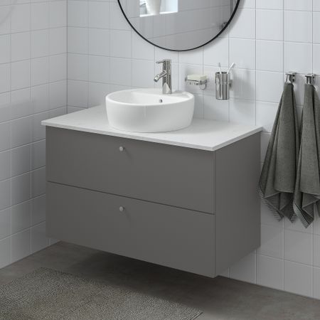 Напольный шкаф для раковины, 2 ящика, белый, бледный серо-зеленый, 60x42x60 см IKEA BEGIVENHET БЕГИВЕНХЕТ