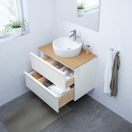 Шкаф для раковины с 2 ящиками, 82x49x93 см, белый, РУНШЕР смеситель IKEA HEMNES ХЕМНЭС, RÄTTVIKEN РЭТТВИКЕН