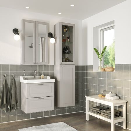 Комбинация для хранения, белый, под дуб, 90x32x180 см IKEA BEGIVENHET БЕГИВЕНХЕТ