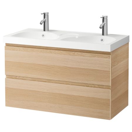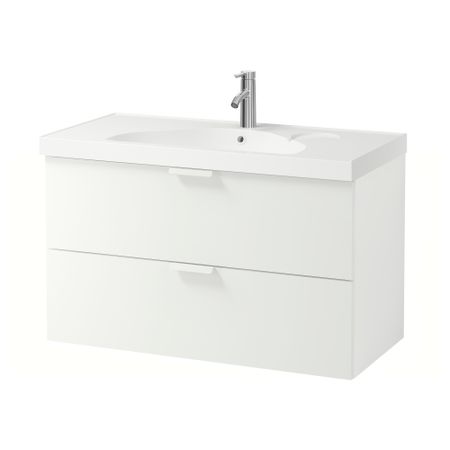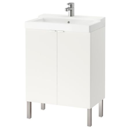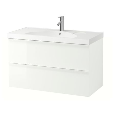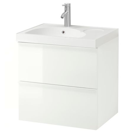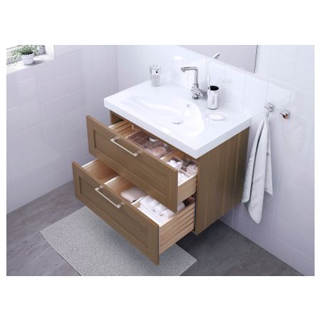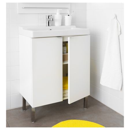 Широкий край образует удобную полочку для мыльницы и подставки для зубных щеток. Смеситель продается отдельно. Петли прилагаются. Сифон прилагается. 1 съемная полка прилагается. Ручки прилагаются. Раковина может быть шире шкафа на макс.