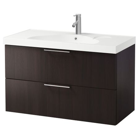 ЛИЛЛОНГЕН / ТЭЛЛЕВИКЕН 491.586.97 Шкаф под раковину с 2 дверцами, черно-коричневый