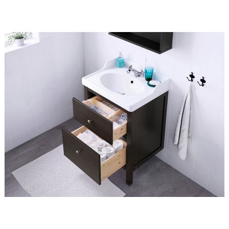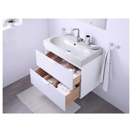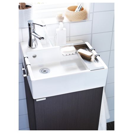 Широкий край мойки образует удобную полочку для мыльницы и подставки для зубных щеток. Смеситель продается отдельно. Петли прилагаются. Выпуск и сифон прилагаются. 1 съемная полка прилагается. Ручки прилагаются.