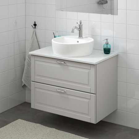 Напольный шкаф под раковину с удобной полкой для полотенец и предметов личной гигиены, которые часто становятся причиной беспорядка. Уникальные клиновые дюбели упрощают сборку, при этом соединения практически невидимы. Бесплатно 10 лет гарантии.