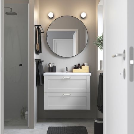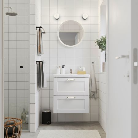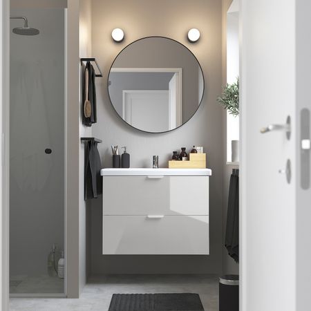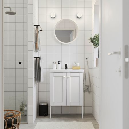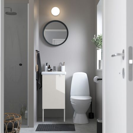 Шкаф под раковину с 1 дверцей, глянцевый белый/Сальен смеситель 44x43x88 см IKEA FISKÅN ФИСКОН / TVÄLLEN ТВЭЛЛЕН