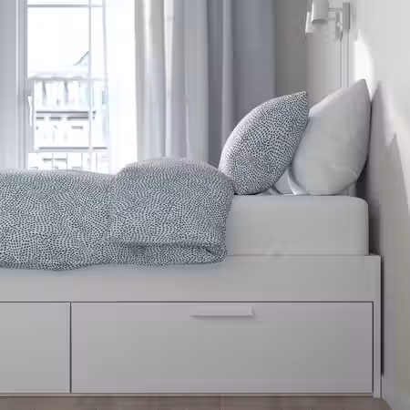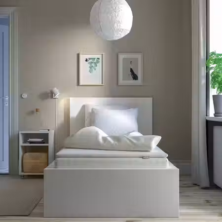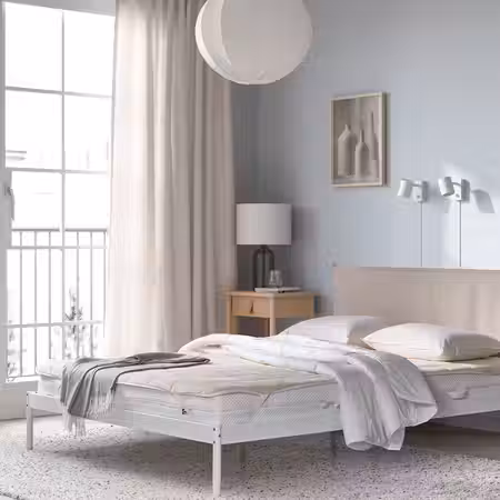 Реечное дно LURÖY с изогнутыми ламелями поглощает вес тела, при этом открытая конструкция свободно пропускает воздух, поэтому матрас «дышит» и дольше остаётся свежим.