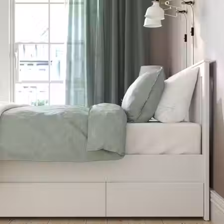 Каркас кровати ИДАНЭС с ящиками сочетает в себе красоту и практичность.