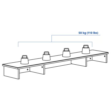 Столешницу и ножки можно прикрепить к стеллажу КАЛЛАКС при помощи фурнитуры ИНЛЭГГ.