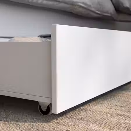 Реечное дно LURÖY с изогнутыми ламелями поддерживает тело и поглощает его вес, при этом открытая конструкция позволяет воздуху циркулировать, сохраняя матрас свежим.