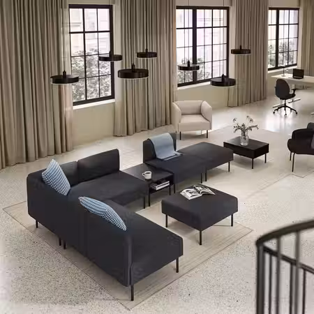 Модули одинаково хорошо смотрятся со всех сторон, поэтому диван можно придвинуть к стене или поставить по центру комнаты.