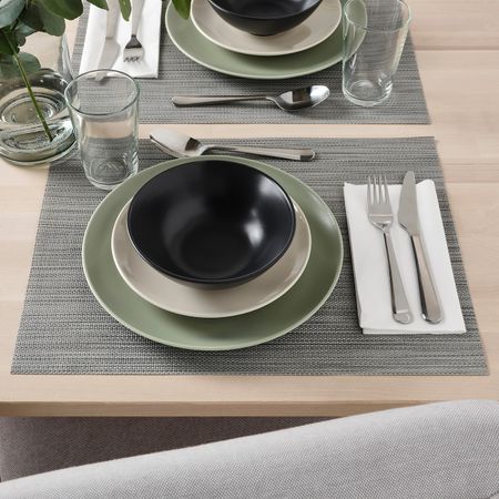 Сделать сервировку стола яркой помогут бирюзовые миски СТРИММИГ. Их можно комбинировать с товарами этой же серии или с другой посудой из каменной керамики.Вдохновением для создания орнамента послужили скандинавская флора и японская лаконичность.