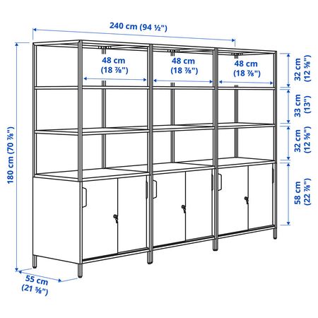 Благодаря чистовой отделке задней стенки это вместительное открытое решение для хранения можно поставить в центре комнаты.