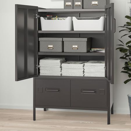 Это закрытое решение для хранения с красивой древесной поверхностью и устройствами для проводов поможет убрать все, что относится к работе и нарушает порядок. Но стоит открыть ящики, и вы сразу увидите, что в них лежит. Все