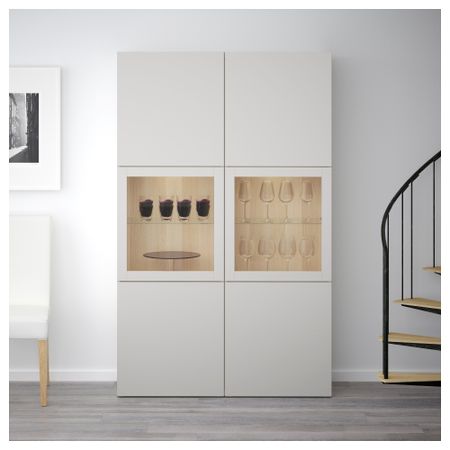 БЕСТО 592.474.48 Комбинация для хранения со стеклянными дверцами, под беленый дуб Грундсвикен, темно-серый прозрачное стекло