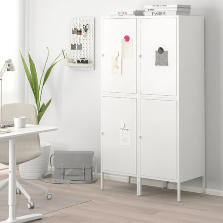 БЕСТО 592.474.48 Комбинация для хранения со стеклянными дверцами, под беленый дуб Грундсвикен, темно-серый прозрачное стекло
