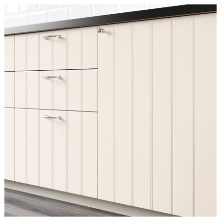 Теплый оттенок дверцы ХИТАРП и орнамент из вертикальных бороздок создают ощущение ручной работы и подчеркивают атмосферу кухни в стиле кантри. Гладкие лакированные дверцы устойчивы к воздействию влаги и загрязнениям и просты в уходе.