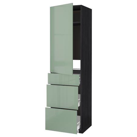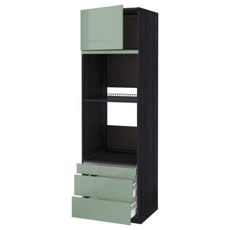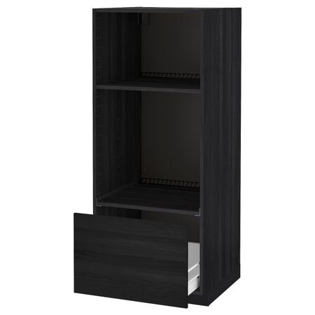Высокий шкаф с ящиком для духовки/СВЧ, черный/Эдсерум коричневый 60x60x140 см IKEA МЕТОД / ФОРВАРА