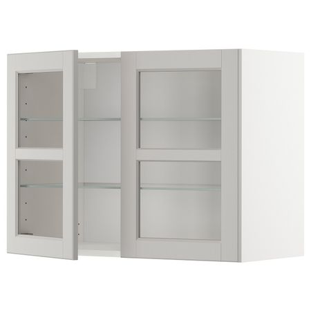 Высокий шкаф с ящиком для духовки/СВЧ, белый/Лерхюттан светло-серый 60x60x140 см IKEA METOD МЕТОД