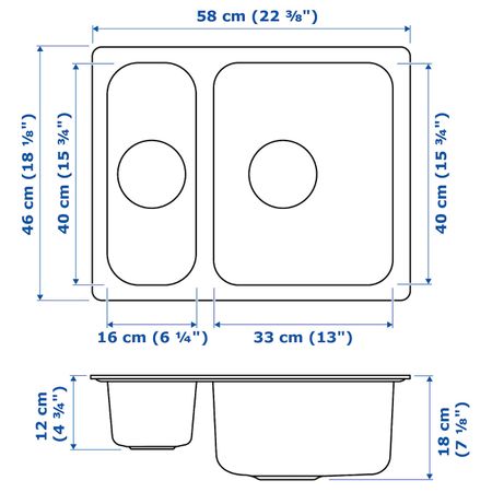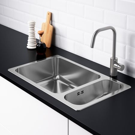 Мойка 1 1/2 врезная, нержавеющая сталь 75x46 см IKEA HILLESJÖN ХИЛЛЕШЁН