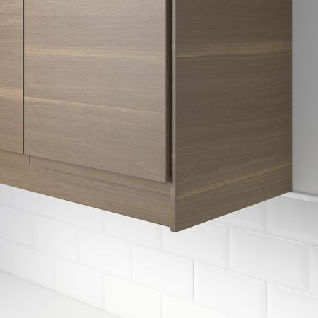 Выберите накладную панель, подходящую по дизайну к дверцам кухонных шкафов, или используйте контрастный вариант отделки панели. Варьируйте и комбинируйте.Меламиновая пленка – прочная, устойчивая к воздействию влаги и появлению царапин поверхность.