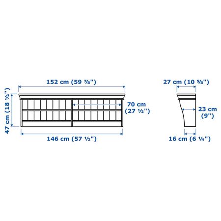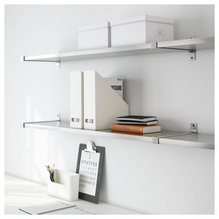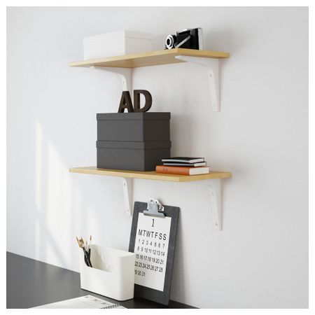 Консоль прикрывает край полки; полку можно отрезать, и срез не будет виден. Для разных стен требуются различные крепежные приспособления. Подберите подходящие для ваших стен шурупы, дюбели, саморезы и т. п. (не прилагаются). Размер: 79x19 см