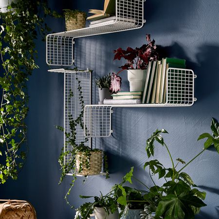 Создайте индивидуальное решение из нескольких полок.На сетчатую поверхность полки можно поставить кружки, книги и украшения.Полку можно закрепить по-разному, в зависимости от того, что вы планируете на ней разметить.