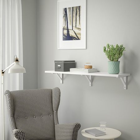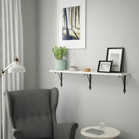 Полка навесная, осина, белая морилка 120x30 см IKEA TRANHULT ТРАНГУЛЬТ / SANDSHULT САНДСХУЛЬТ