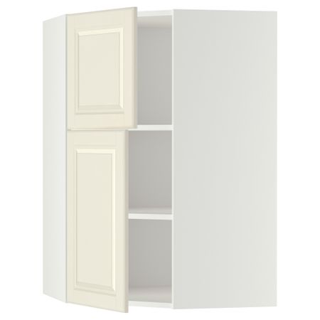 Угловой навесной шкаф + полки, 2 стеклянные дверцы МЕТОД, белый, Лаксарби белый (68x100 см)