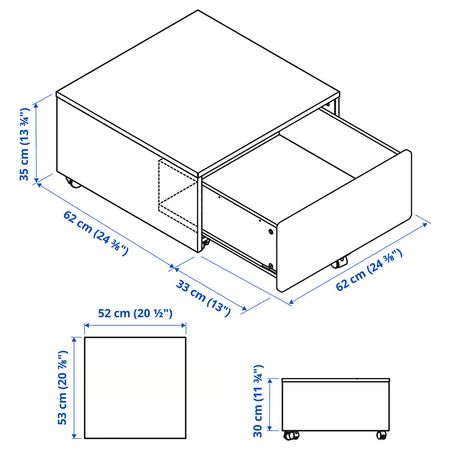 Мебель легко передвигать благодаря колесикам, при этом когда колесики заблокированы секция стоит устойчиво.Под крышкой удобное место для хранения. Ширина: 61 смГлубина: 61 смВысота: 36 см.
