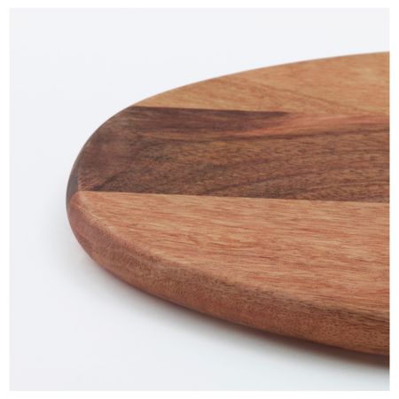 Разделочную доску также можно использовать как поднос для подачи на стол сыров или мясной нарезки.Прочная деревянная поверхность. Ножи не затупляются.Вымойте изделие перед первым использованием.