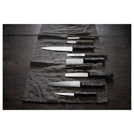 Нож с зубчатым лезвием подходит для резки хлеба и мягких овощей, например томатов.Нож из нержавеющей молибден-ванадиевой стали долго остается острым.Хвостовик ножа проходит по всей длине ручки, делая ее прочной и обеспечивая ножу хороший баланс.