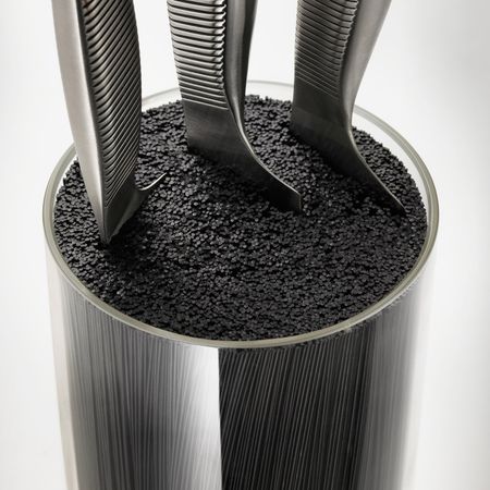 Подходит для ножей с длиной лезвия макс. 22 см. Высота: 24 смДиаметр: 13 см. Основание: Кора пробкового дереваТрубка: СтеклоПоднос/ Проволока: Пластмасса АБС