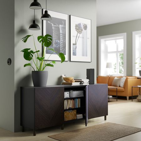 Ножки делают комбинацию БЕСТО визуально легче, приподнимая модули над полом. Кроме того, такое решение упрощает уборку под шкафом.Соединительную планку можно использовать для соединения двух модулей.