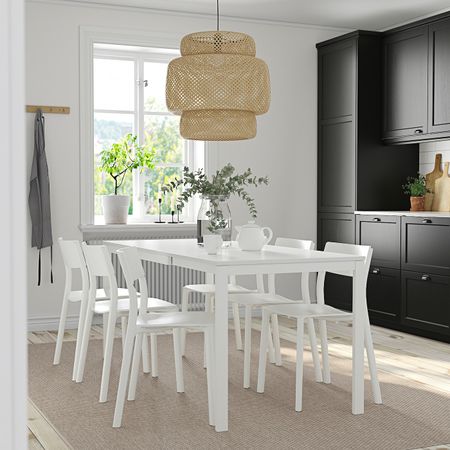 Стол и 6 стульев, белый/белый 120/180 см IKEA VANGSTA ВАНГСТА / TEODORES ТЕОДОРЕС